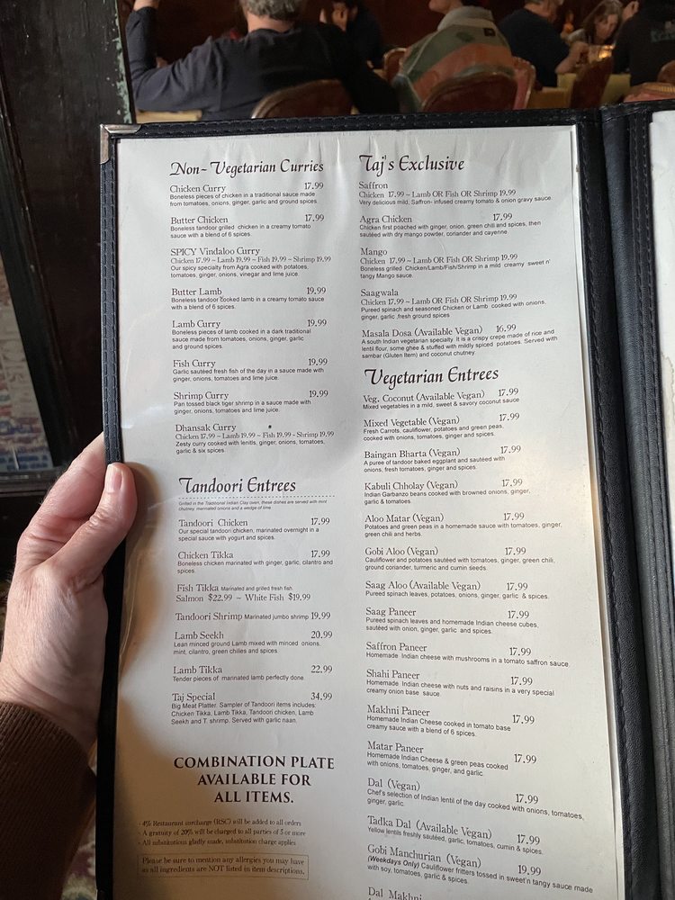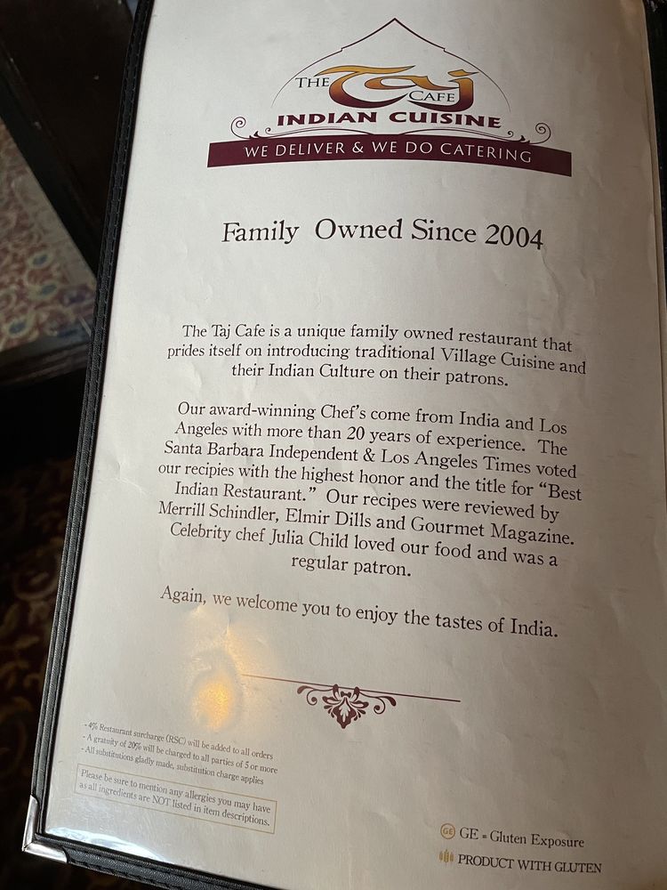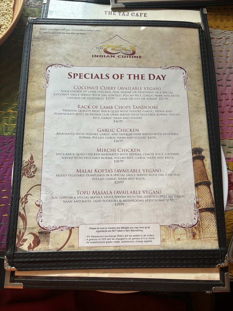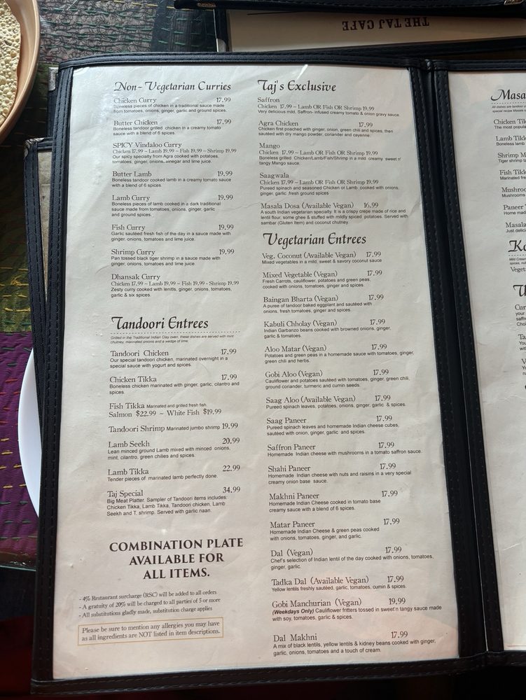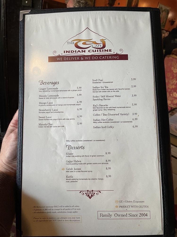 The Taj Cafe Menu
